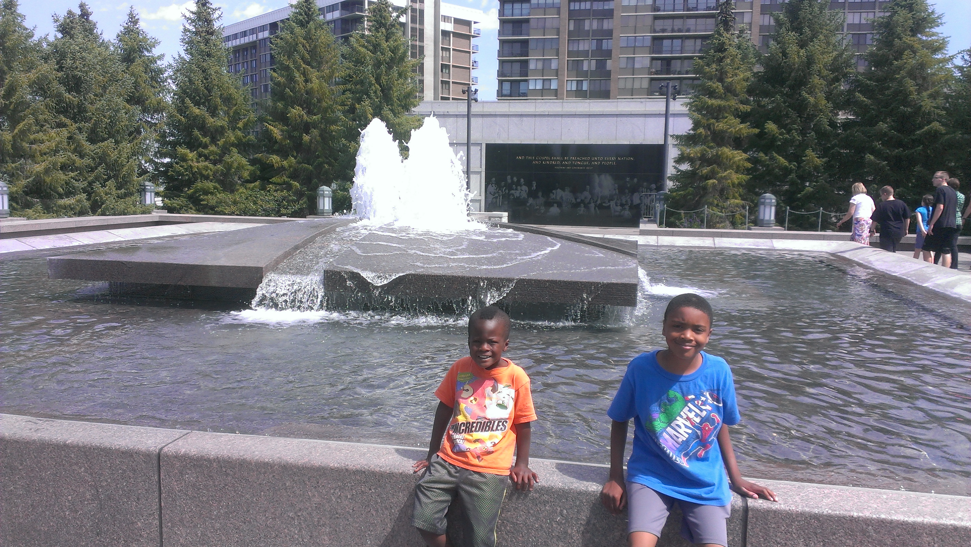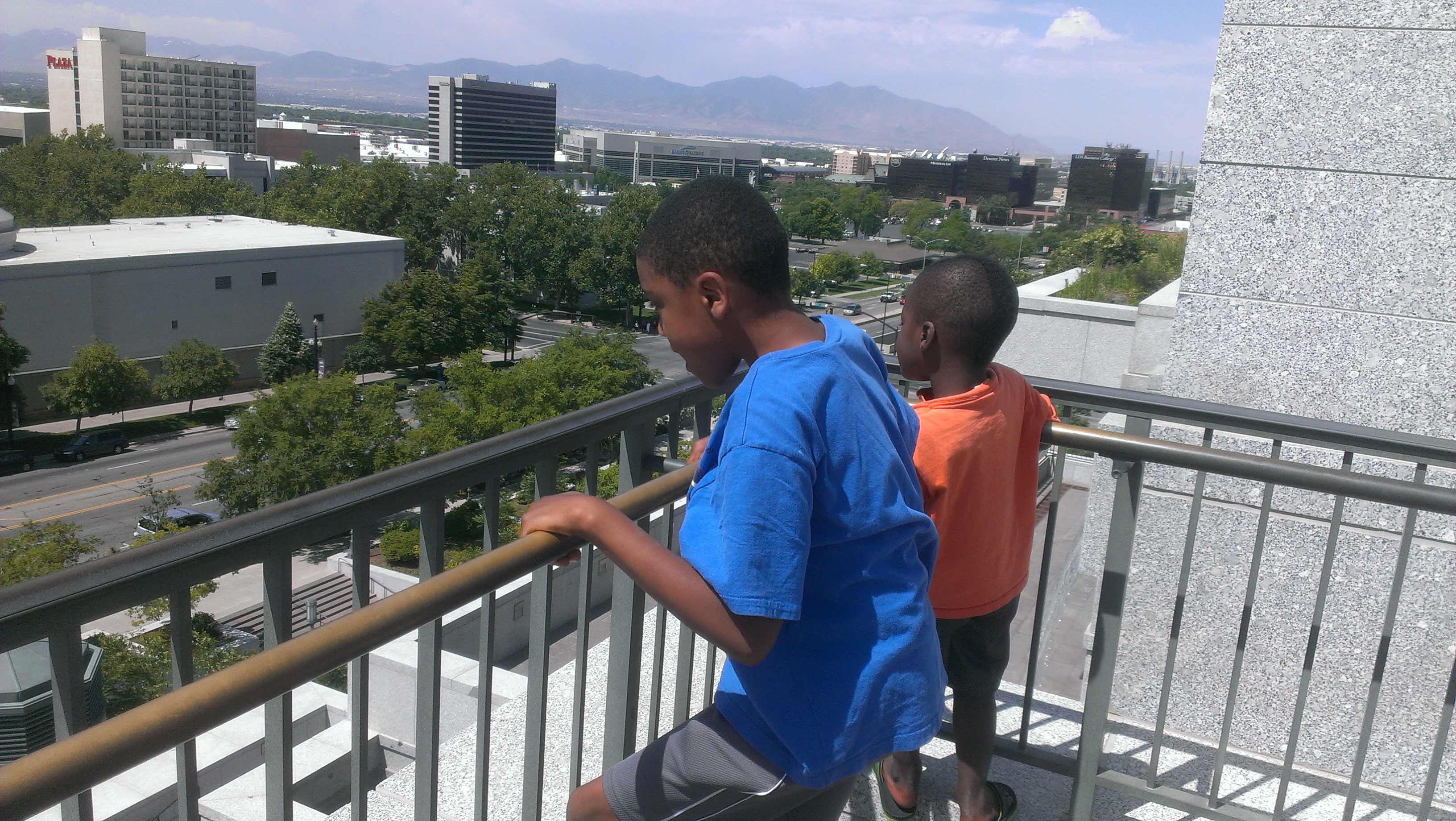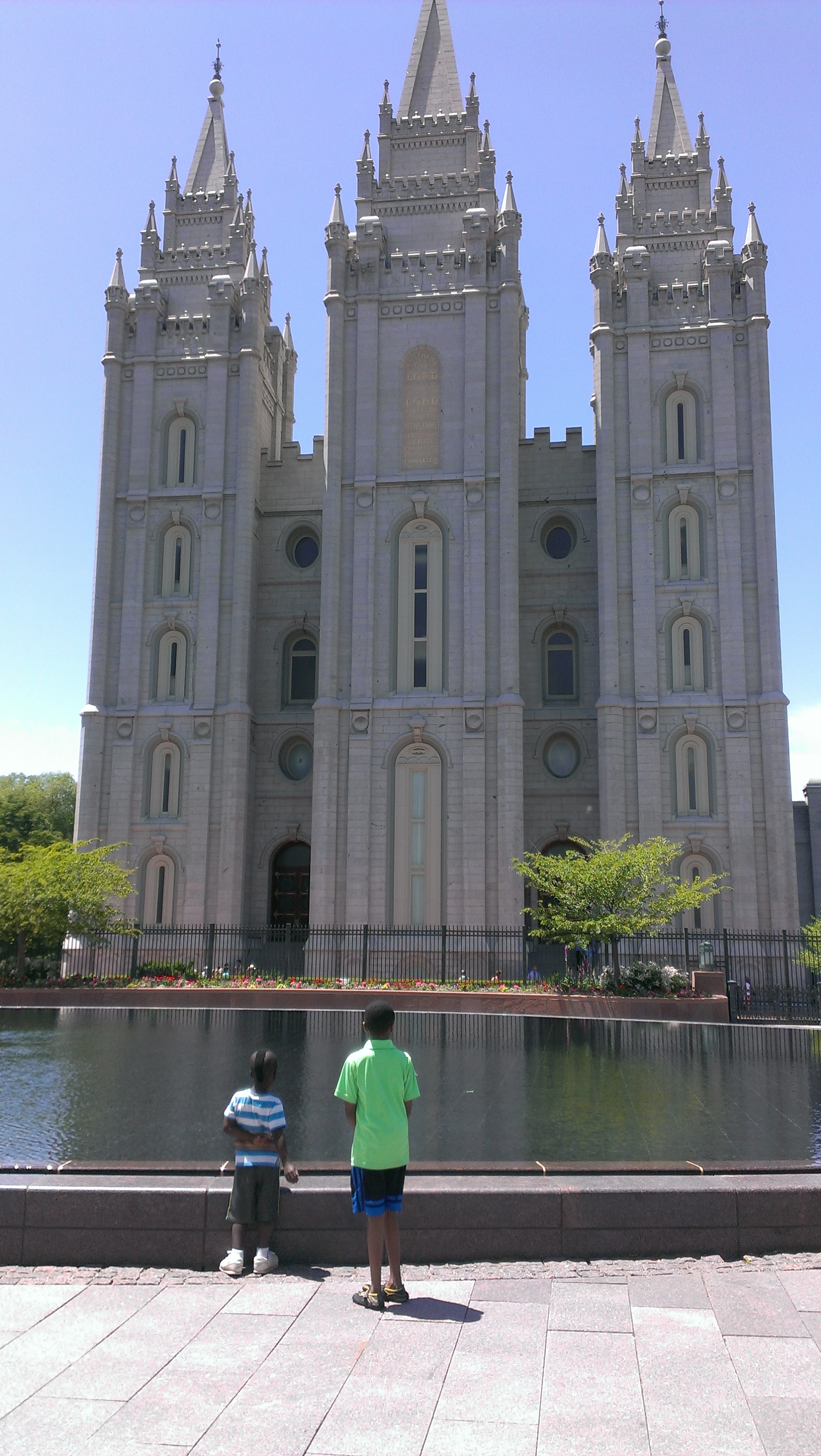 We also spent time with my brother Ben both in Salt Lake and Provo. The first morning we were in Provo, we headed to the BYU campus, hoping to get into some of the museums. We were walking toward the Book Store where I was scouting reading material for Bobby when we passed a young lady. I could see her looking at my boys, so I looked up and said hello when surprise knocked me on the head. I knew this girl. She looked at my face to respond and realized that she knew me too. We had attended the same ward when we lived in Michigan. She laughed as she told me that she saw our family and was thinking “Oh, that’s wonderful. Look at that family with two little African-American boys.” Which I guess makes more sense when you know that she has two younger African-American brothers. One was adopted the year before we adopted Gabe and other the year after I believe. It was great to catch up. I am sorry I missed the rest of her family who were coming out there the next week.