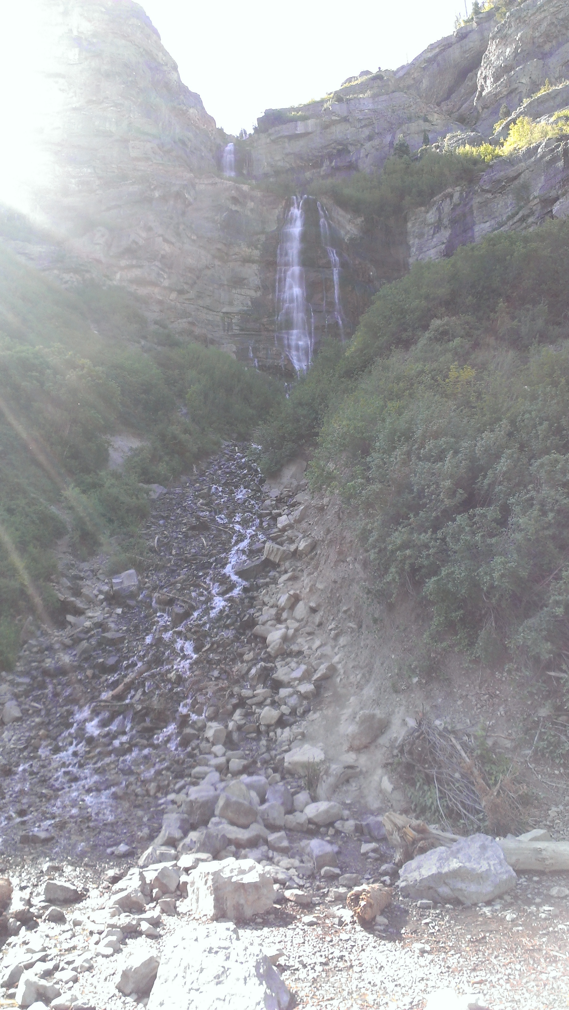 We spent the next day in Provo again. On the Friday before Max had noticed the mountains all around us and begged us to take him to climb on one of them. So Ben took us to hike up to Bridal Falls. I have never been before. It was an easy and enjoyable walk to the falls, where my boys promptly fell into the water. Okay, technically only Max actually fell in. Gabe just got pretty wet. Afterwards, we hit lunch at the Creamery again.