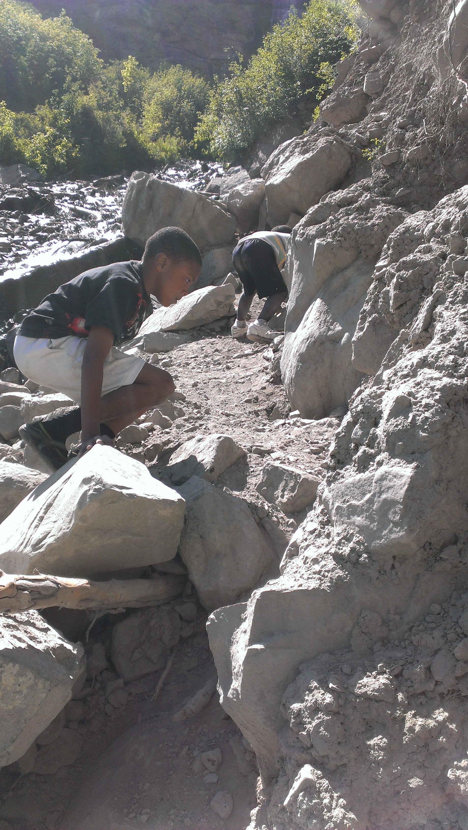 We hiked beyond the Falls and then doubled back. Then I climbed up beside the Falls with the boys as high as we could go. Good dirty fun!