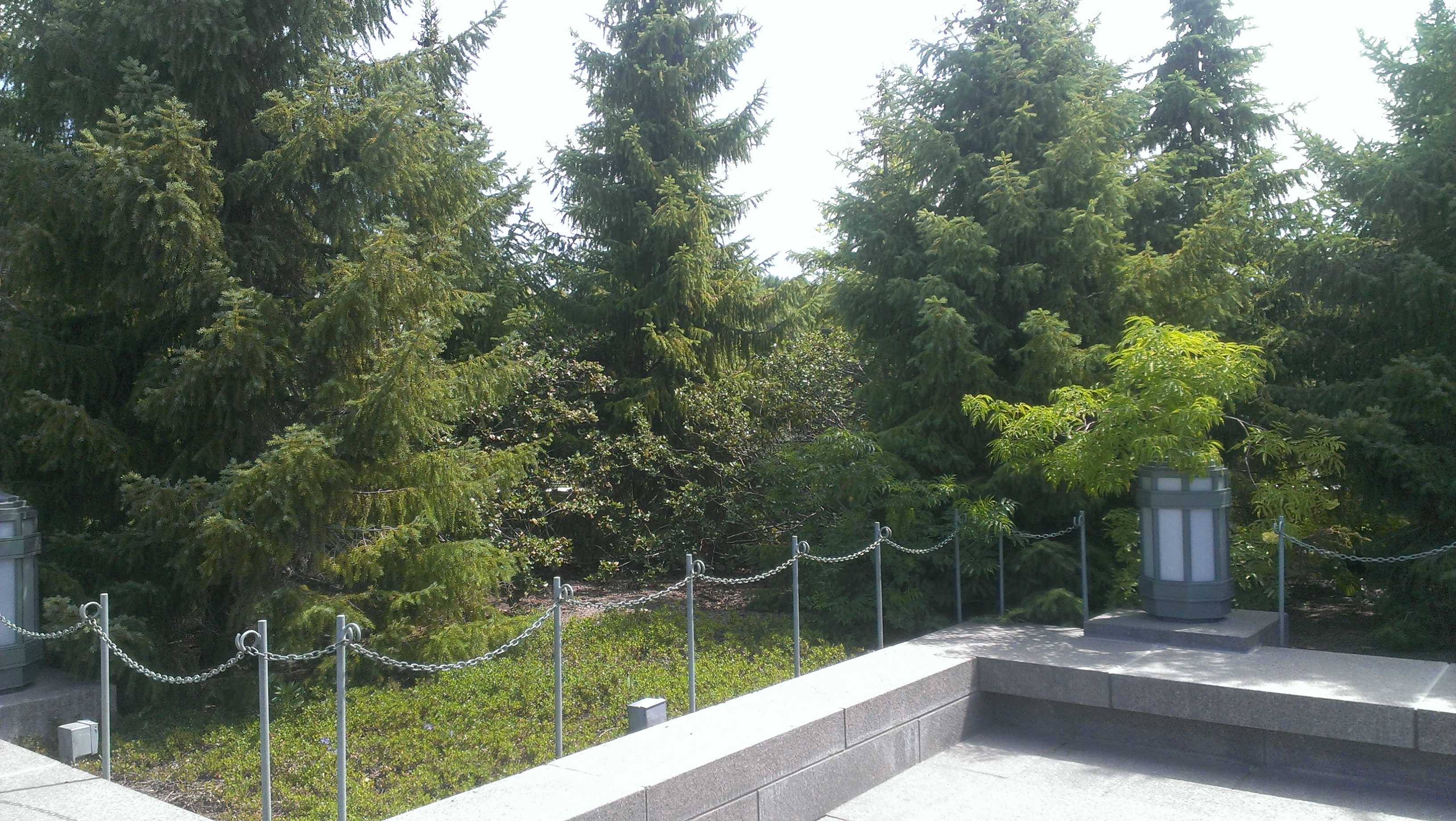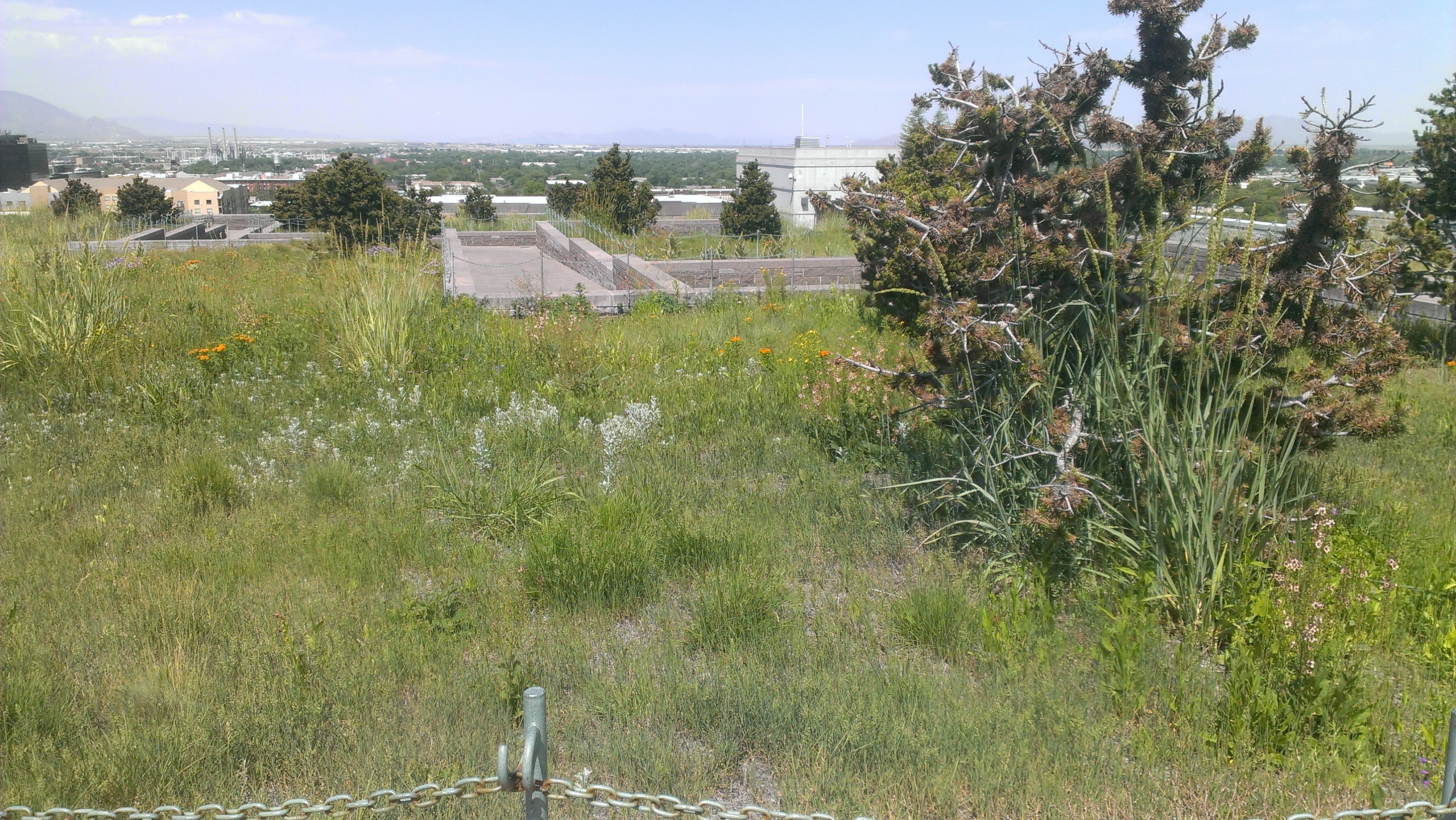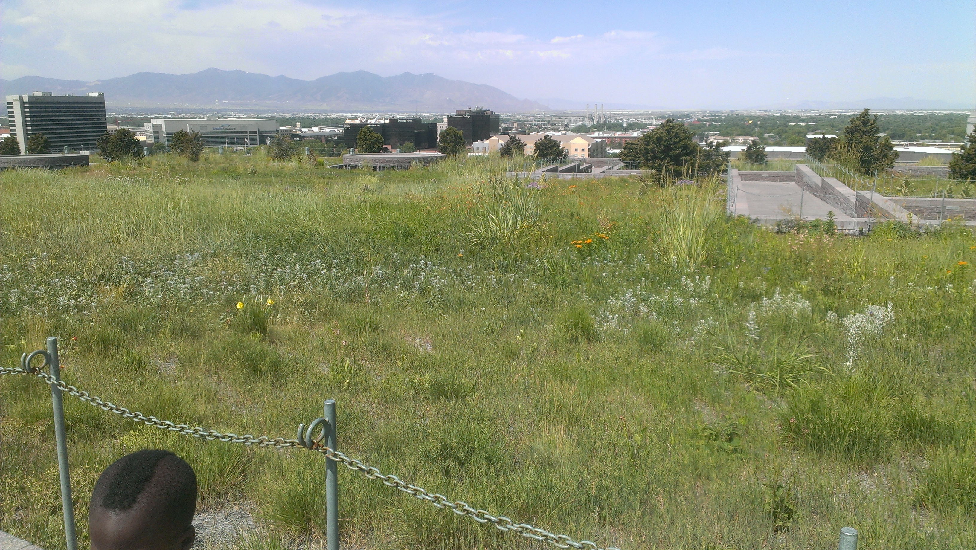 Interesting fact: There is no dirt on this roof. The trees and other things are planted in a mixture of peat moss and a very lightweight type of shale. And the plants were chosen to represent the plants the settlers found when they arrived to Utah. They required very little moisture.