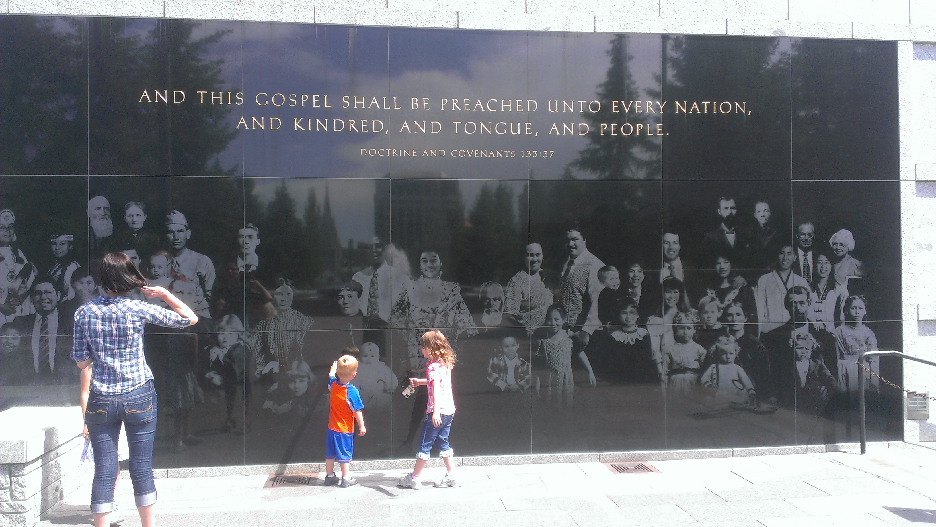 I like this wall. It reads “And this gospel shall be preached unto every nation, and kindred, and tongue, and people.” And features pictures of people from all around the world who have actually joined the church.