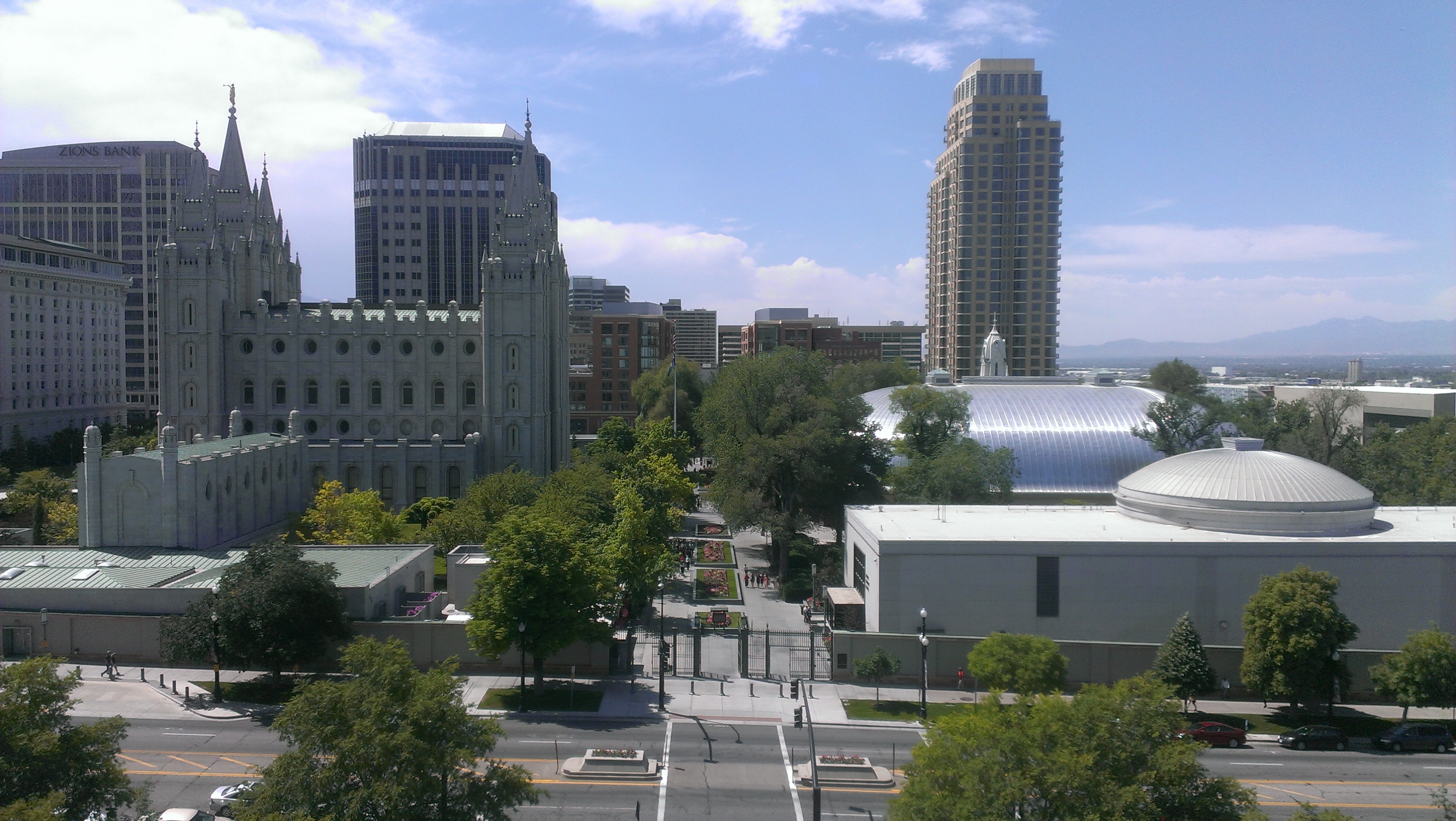 View from the roof top overlooking Temple Square. I still love the roof of that Tabernacle. One of my favorite buildings of all time.