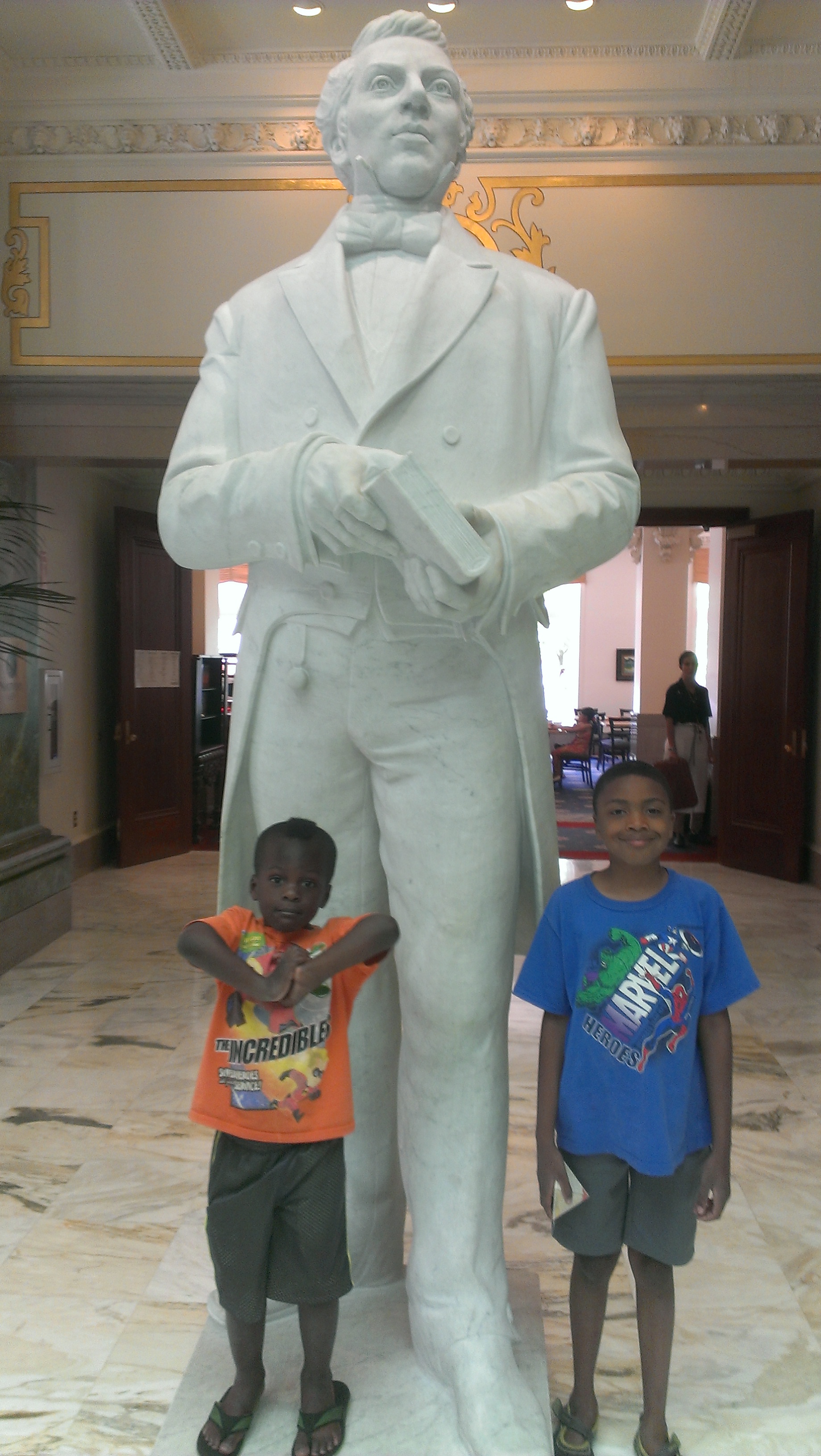 Visiting this statue was the first thing on my list of things to do in Salt Lake City, but the last thing I actually got to see. I’m glad we made it. Though my boys were extremely tired, they reacted to this statue just like they did to the temple. They ran right up to it, like it was a long-lost friend they couldn’t wait to talk to. And I thought that was the perfect way to end our time in Salt Lake.