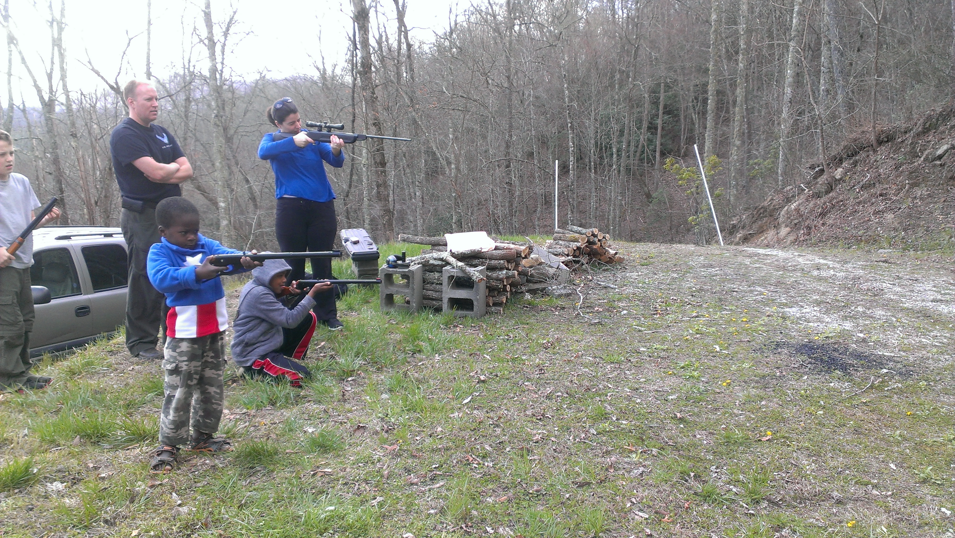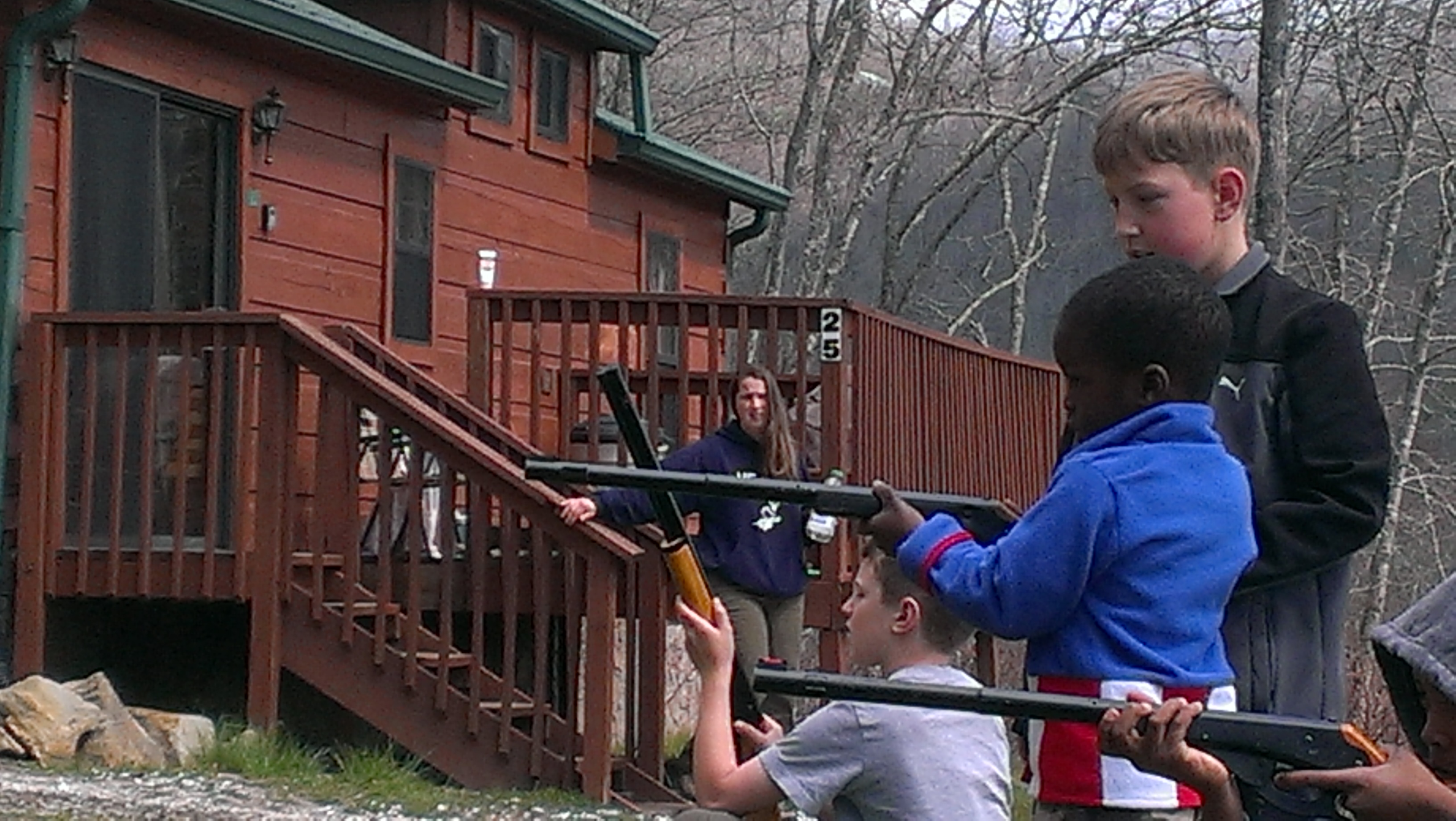 My brother-in-law Mike set the boys up shooting air soft guns at cans and targets. He also had a pellet gun and a hand gun, but only the older people practiced with them.