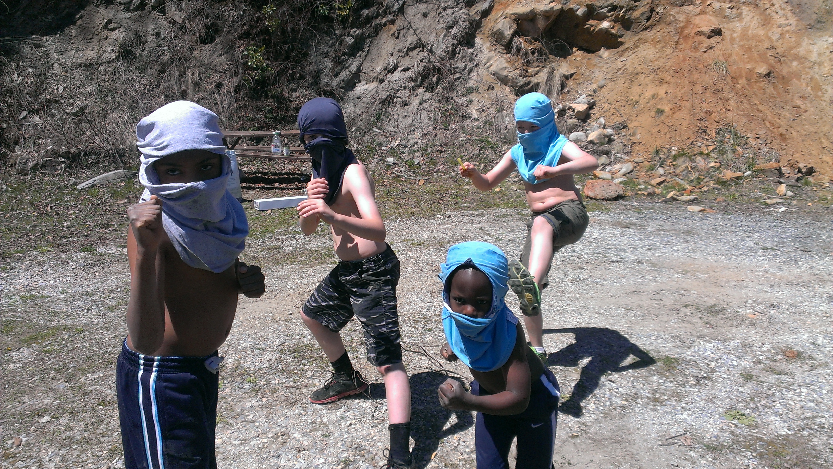 Random Ninja sighting! Mary taught us how to turn any shirt into a ninja mask. The boys played ninjas on the dirt hill behind them forever.