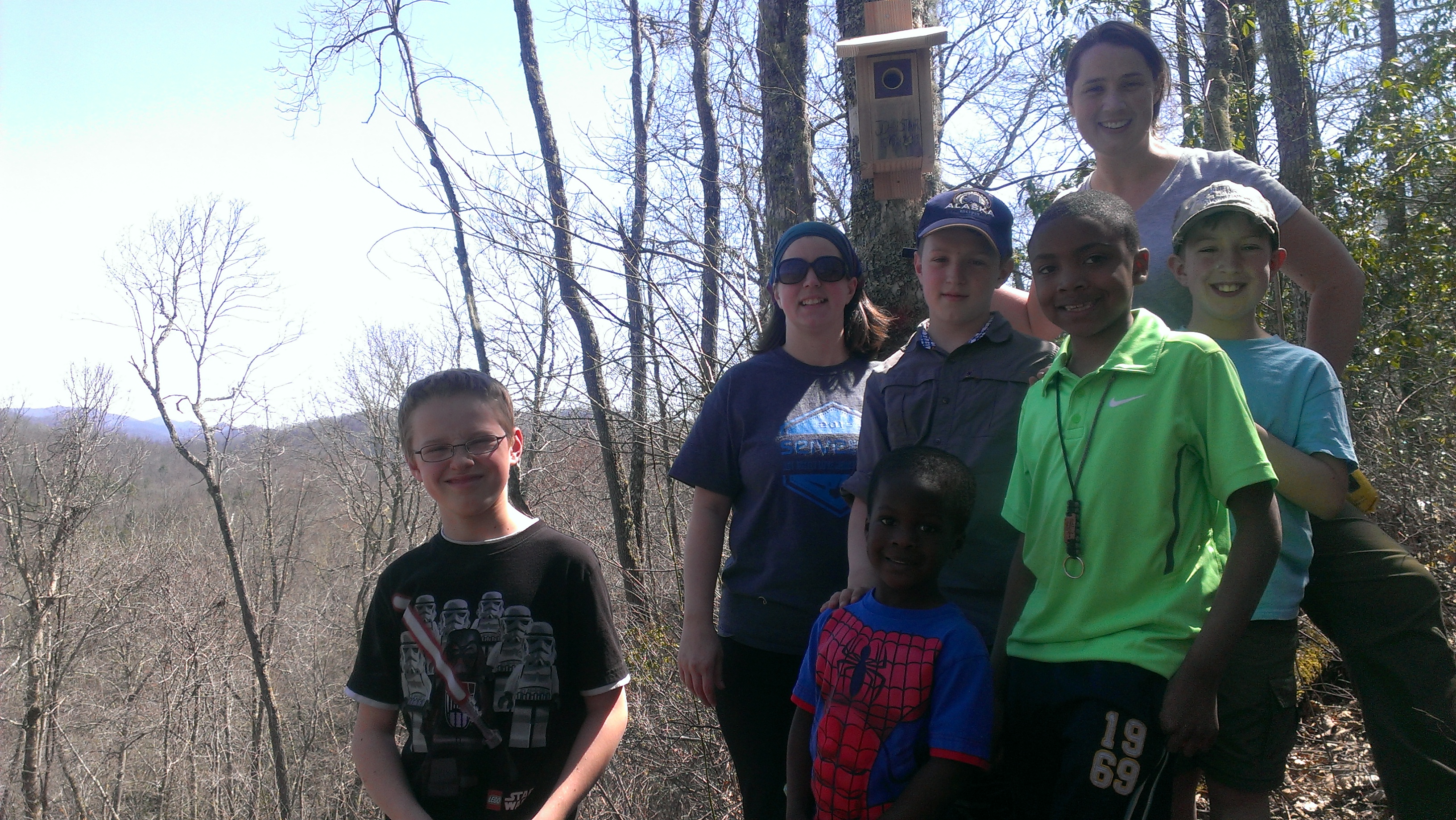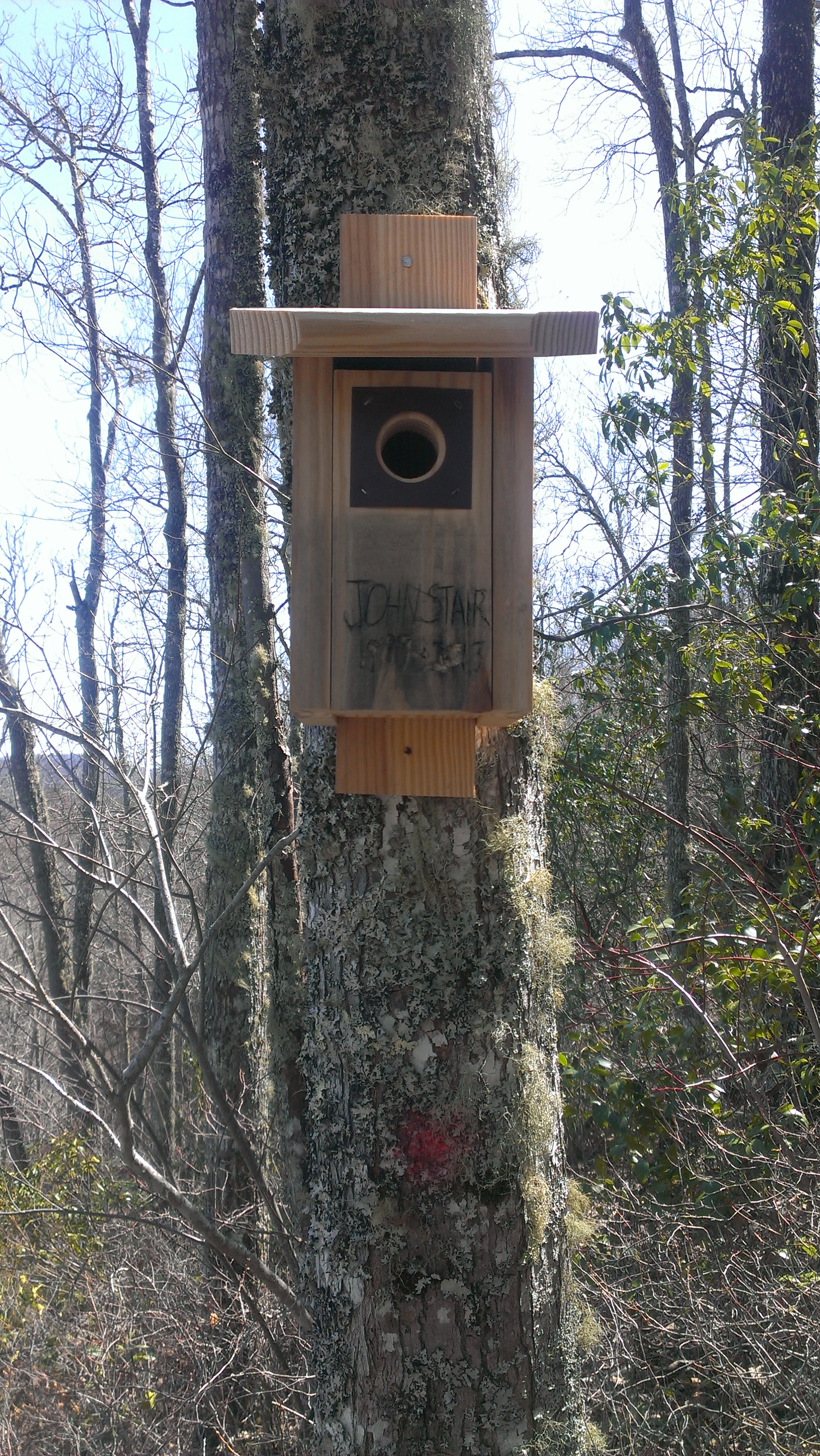 Next comes some pictures of us hanging the birdhouse up at Mike’s Contemplation Spot.