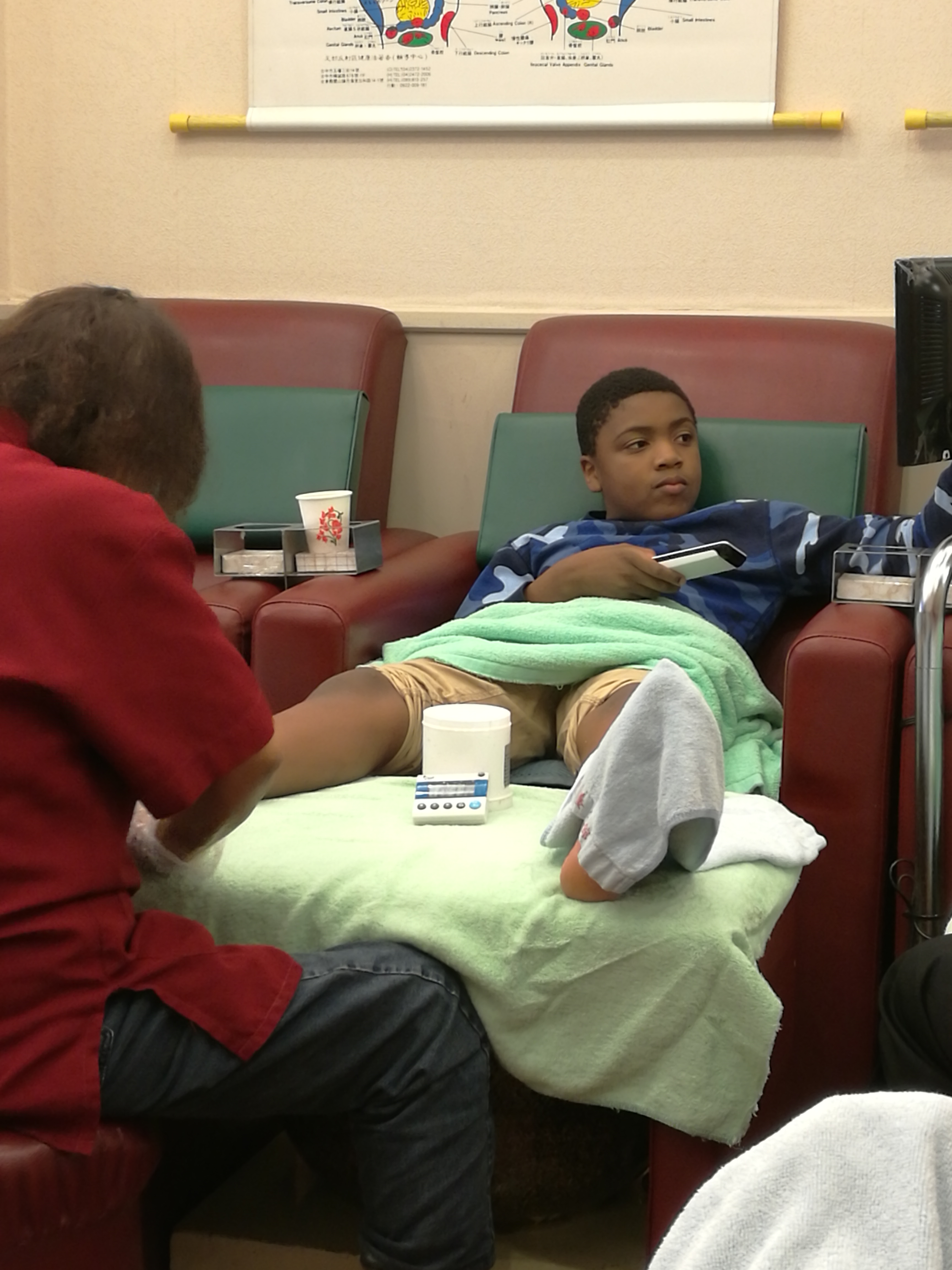 Gabe’s favorite part of the massage was the 300 TV channels he could flip through.