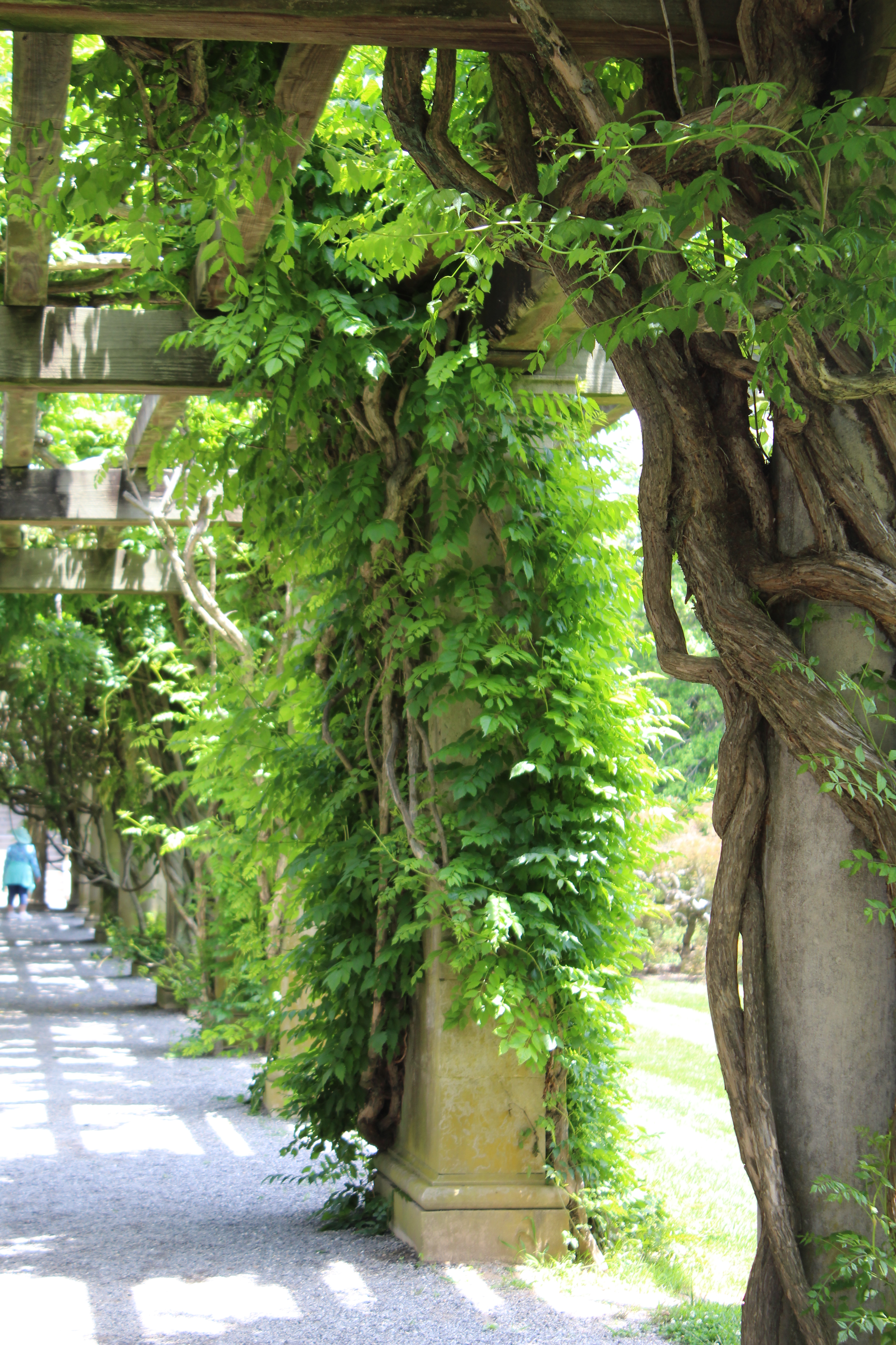 Arbors running along one side of the grounds.