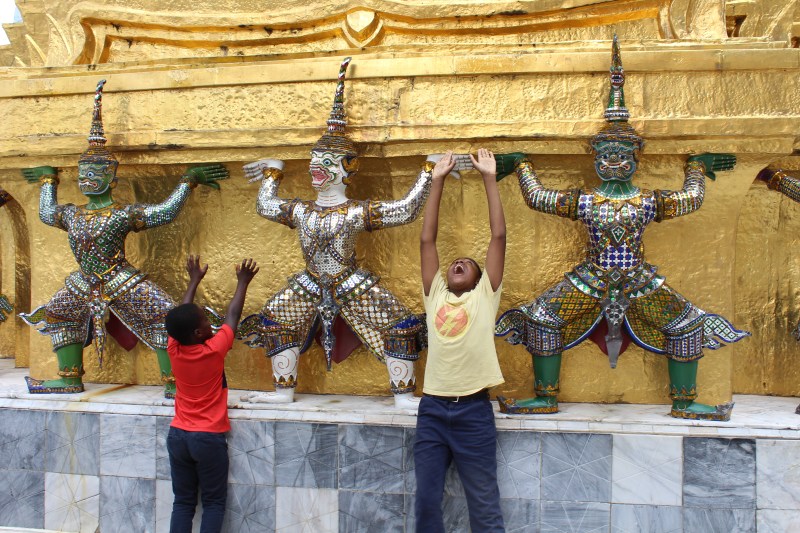 Gabe and Max trying to help the Emerald Buddhas.