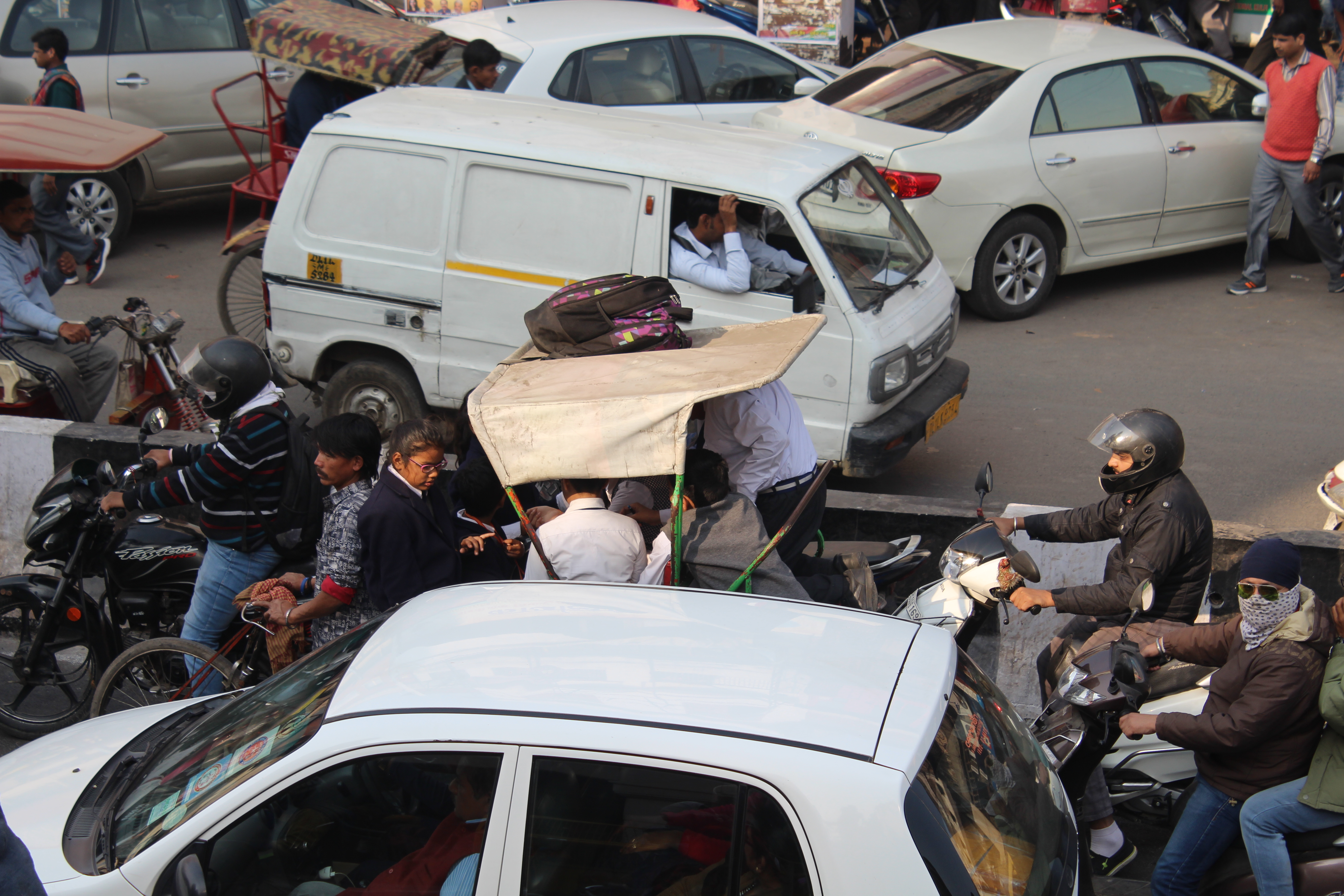 At least 15 kids jammed into a rickshaw (middle) on their way home from school.