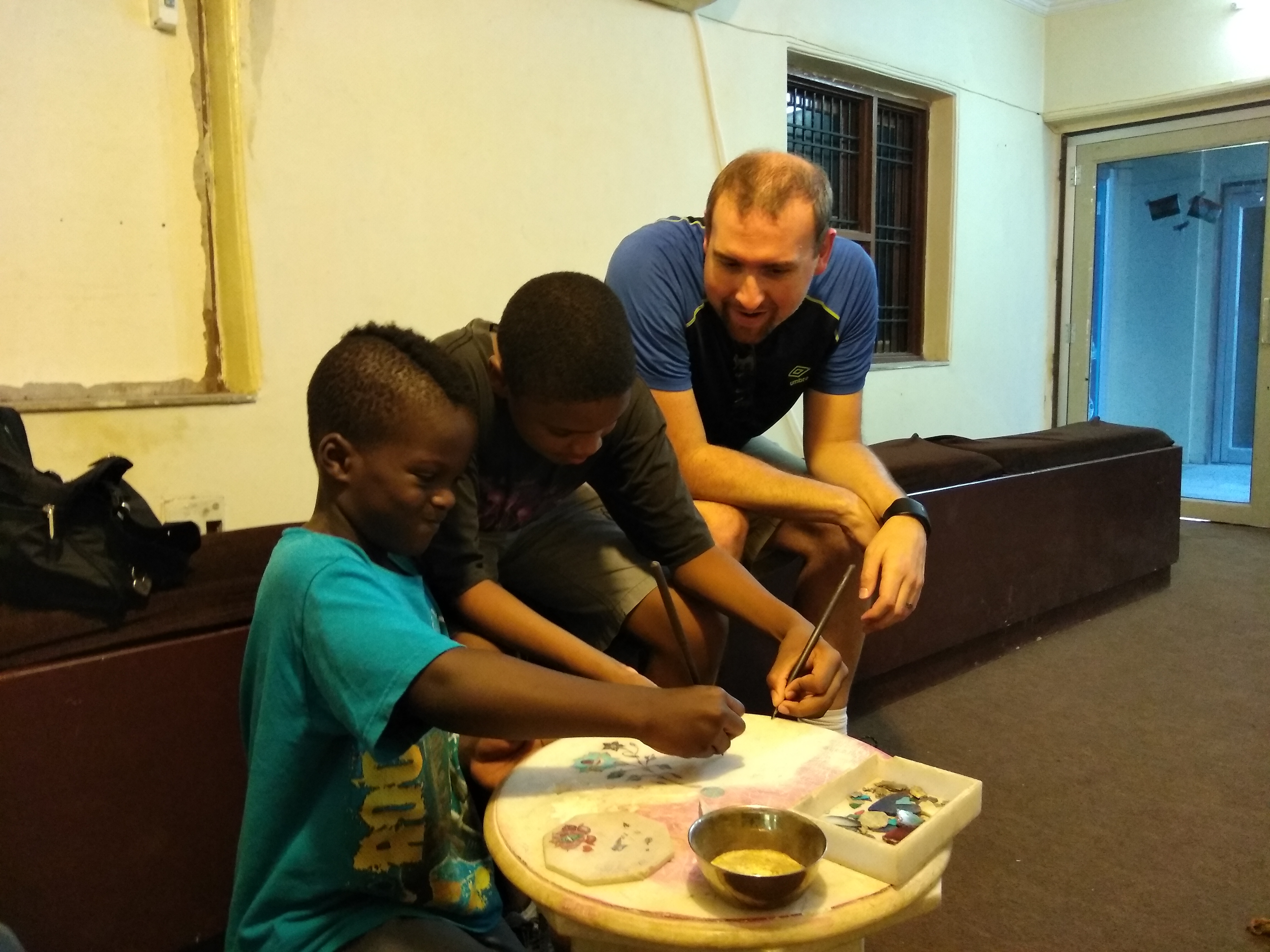 Max trying his hand at setting the stones.