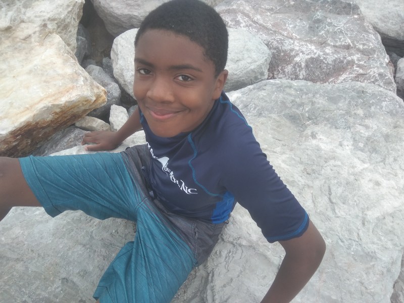 Gabe found a giant pile of rocks to climb on.