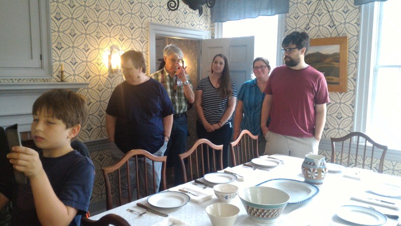 Moms, Dads, and Grandparents taking in the formal dining room.