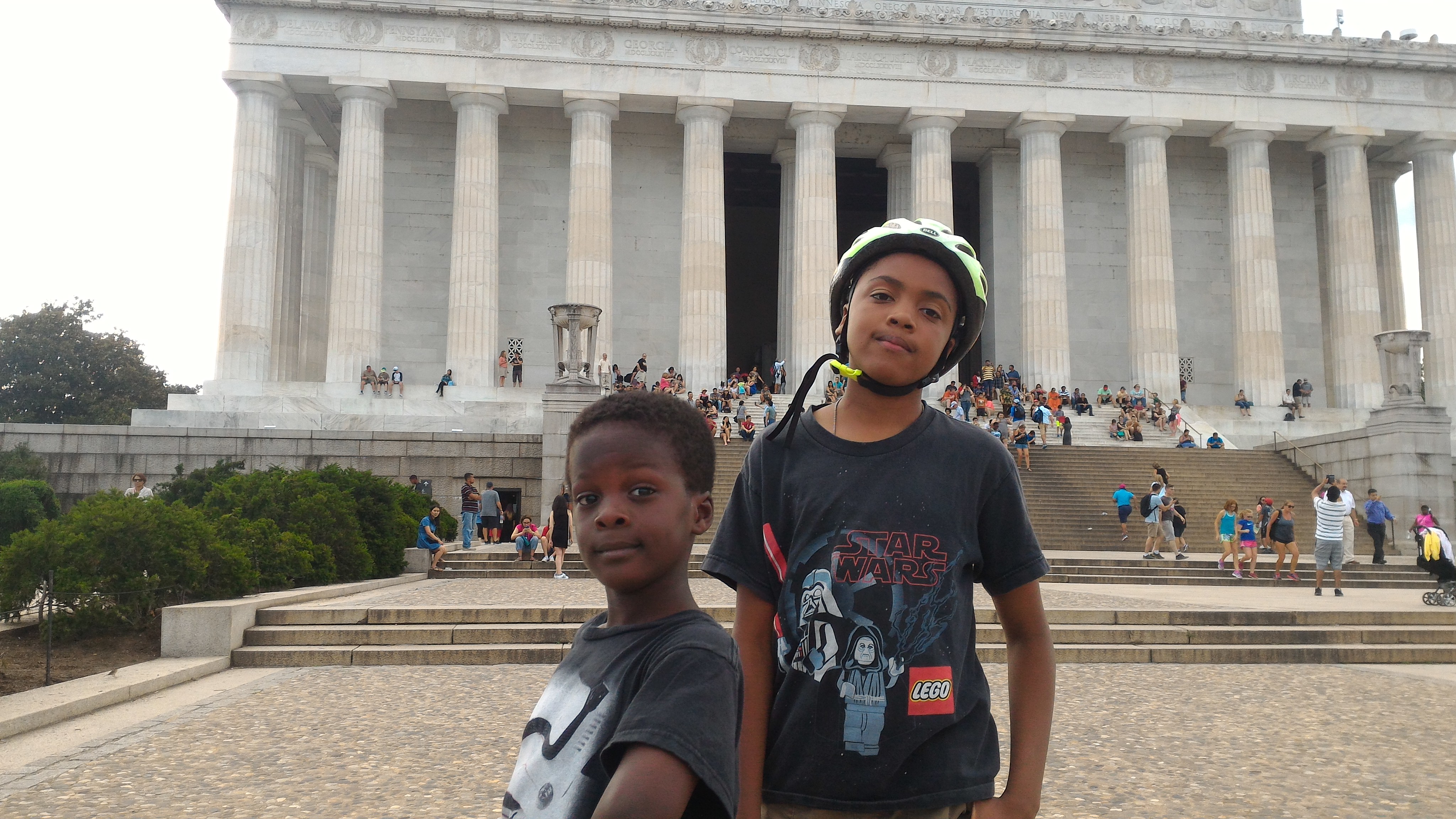 The boys refusing to climb any more stairs.